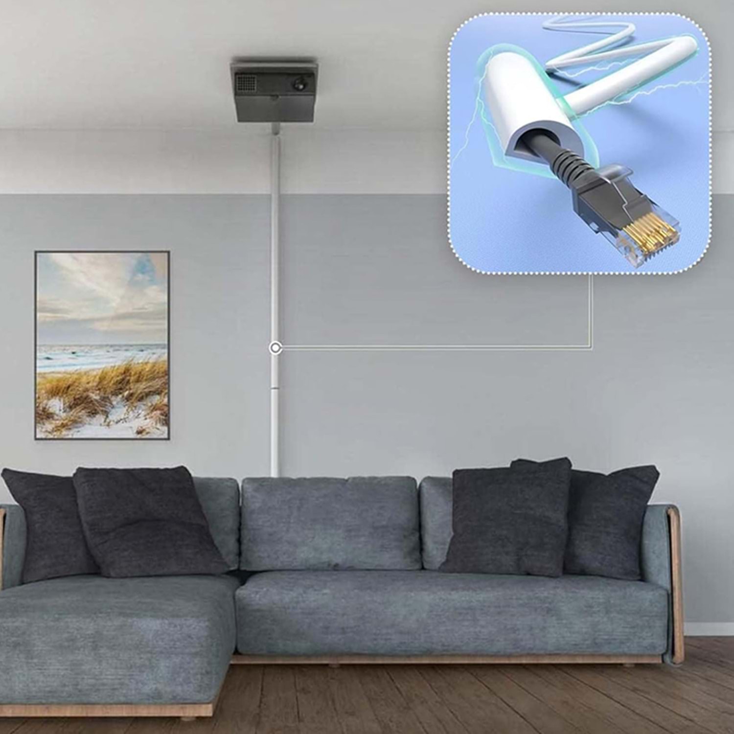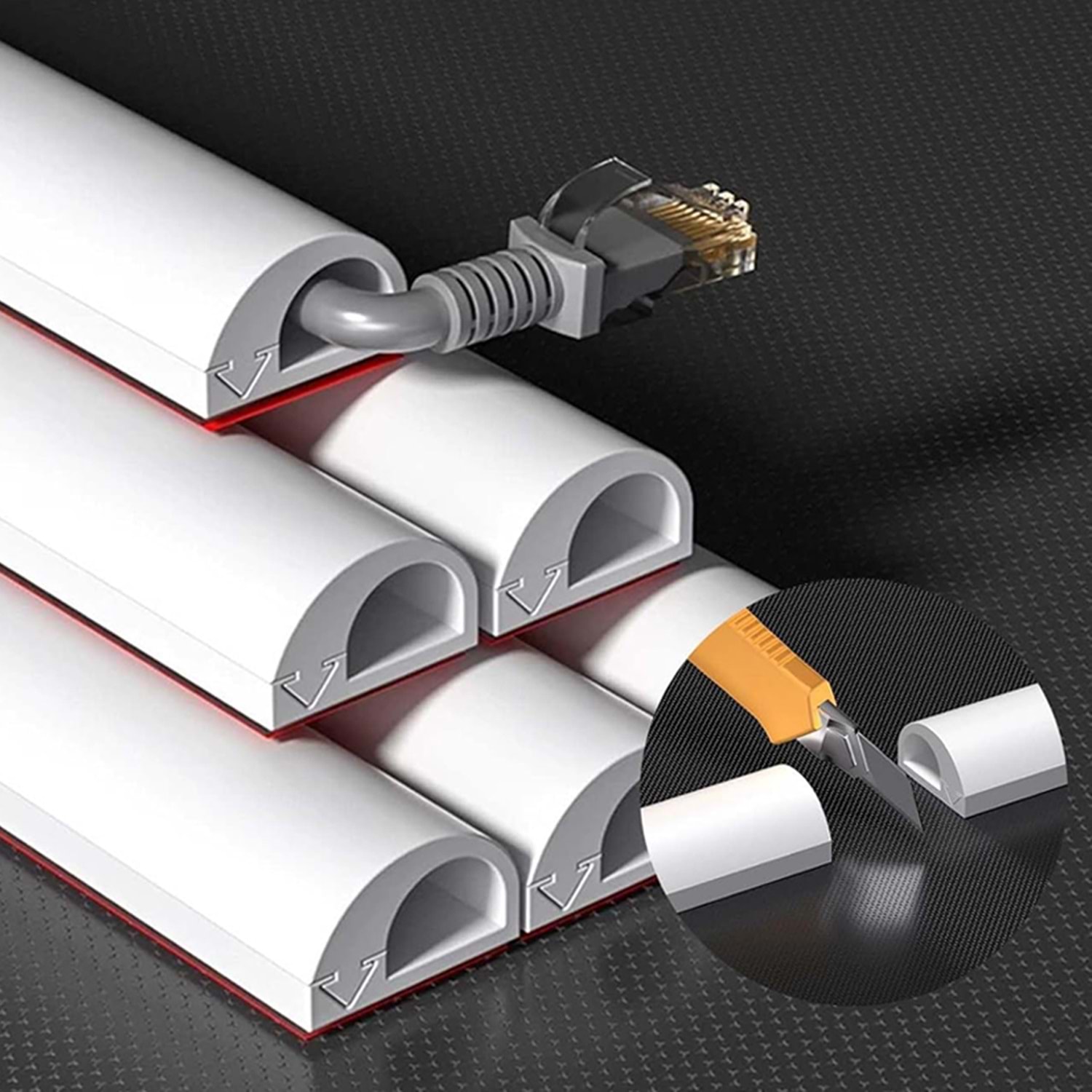 Kablo kanalı kendinden yapışkanlı özelliği sayesinde vidalama veya çivileme gerektirmez.