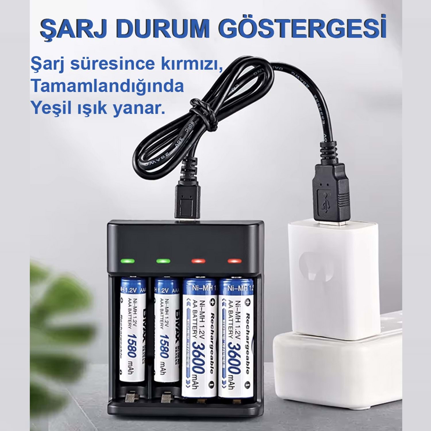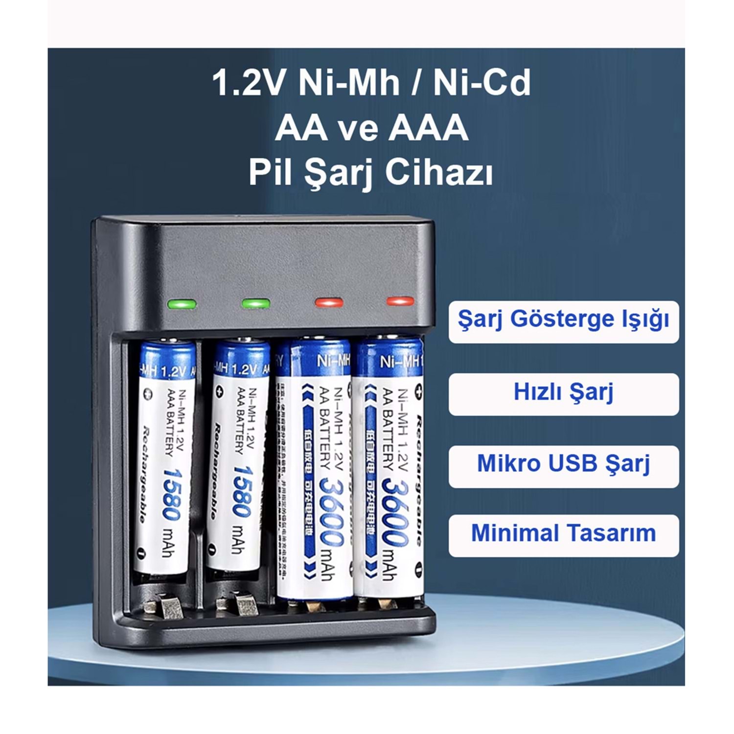 Ürün Modeli:Pil Şarj Cihazı (Dört Yuvalı) - 1.2V Ni-Mh / Ni-Cd AA / AAA