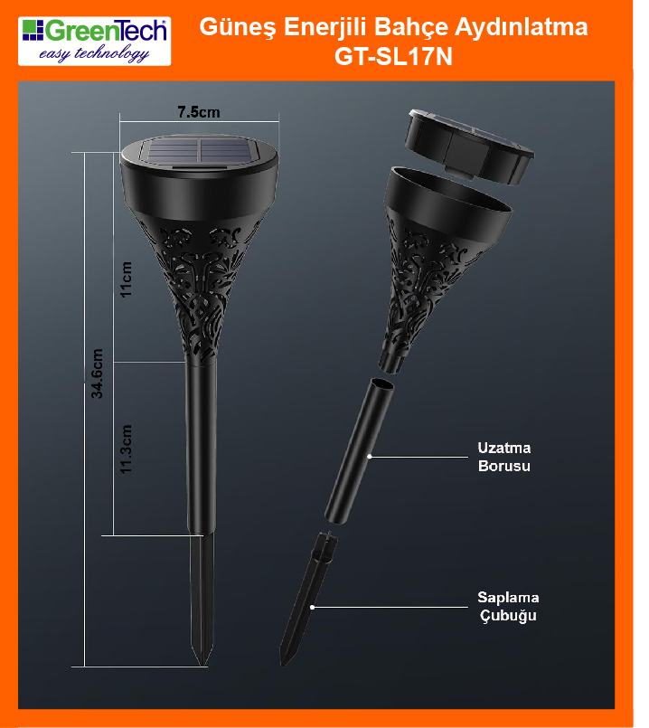 Greentech Güneş Enerjili Bahçe / Çim Aydınlatma 6 Adet / GT-SL17N