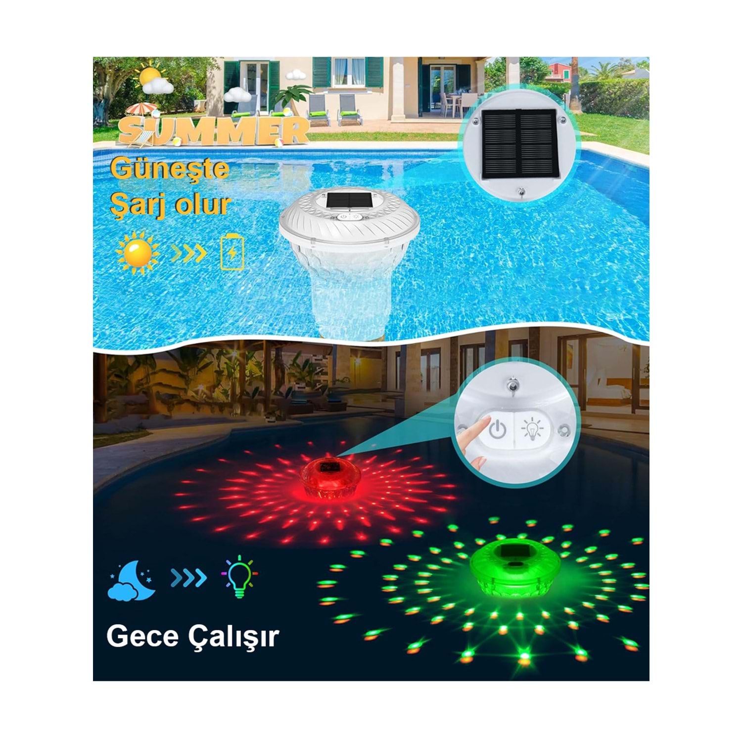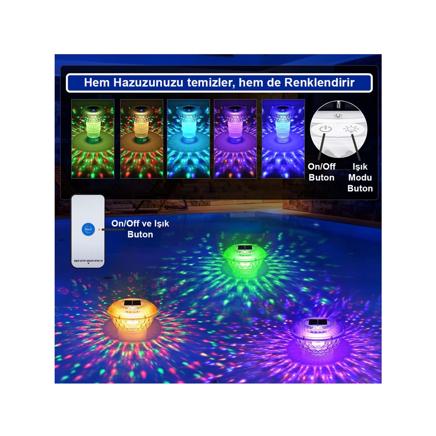 Greentech Güneş Enerjili, Klor Hazneli, Kumandalı Havuz LED Aydınlatma 1 Adet/GT-PL01